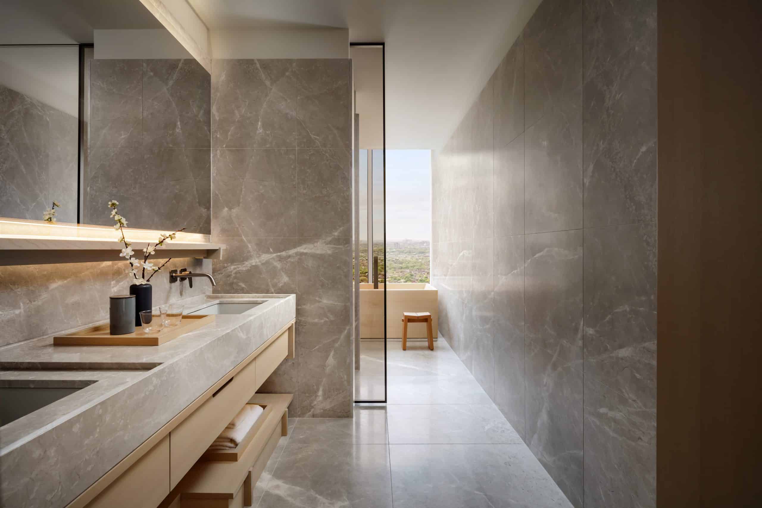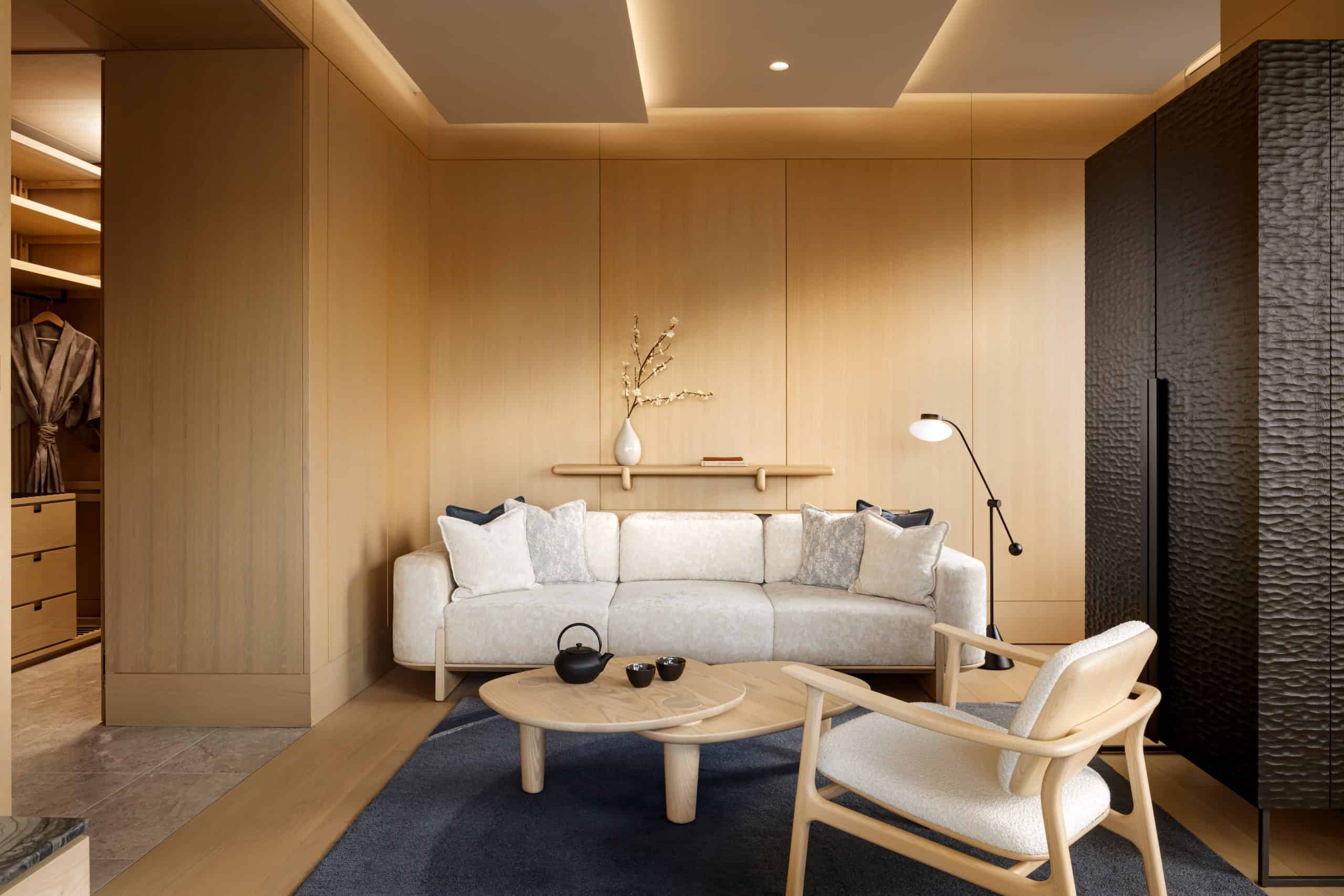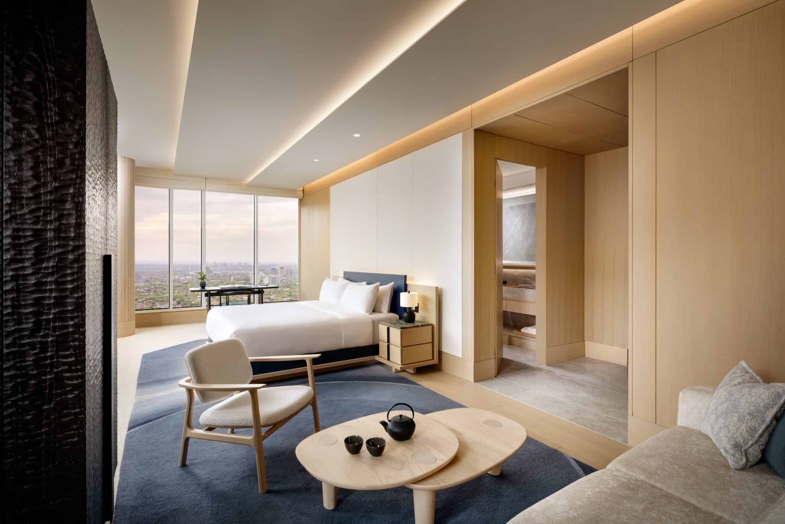 The bathrooms are next level, equipped with Nobu’s signature wood soaker tubs, rainfall shower heads, Japanese Toto toilets, double stone vanities and heated flooring. It doesn’t stop there: rooms are also stocked with Dyson hair tools, luxury bath amenities including a bath soak, and Japanese yukata robes. Mini bars in rooms offer unlimited snacks and refreshments, and even wellness and beauty products.