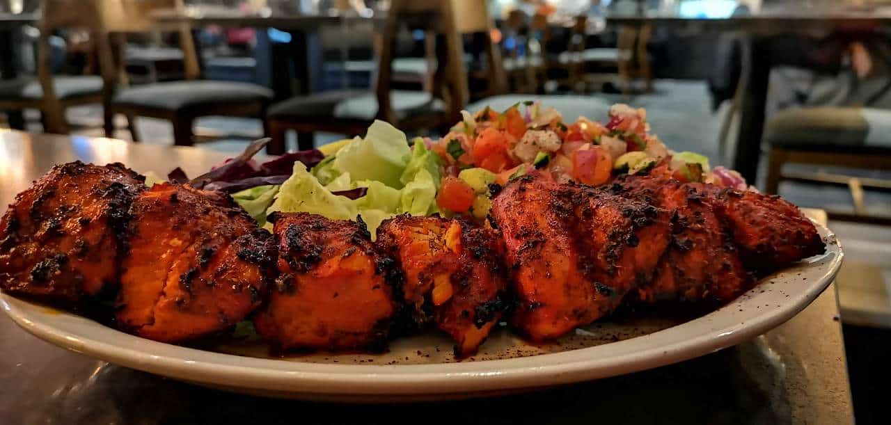 The restaurant boasts a variety of kabob dinners with different kinds of grilled meat including chicken, beef tikka, kofta, and even fish tandoori. Other options on the menu include vegetarian dishes, salad, naan, and wraps.