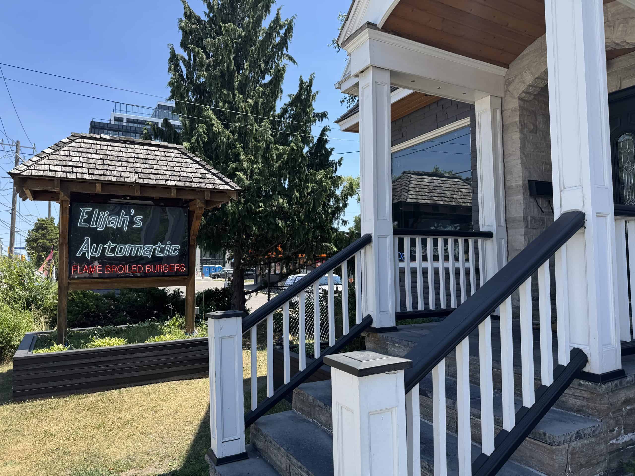 It’s not just any old house, though. Venture past the porch and you’ll find it’s now the home of Elijah’s Automatic Flame Broiled Burgers.