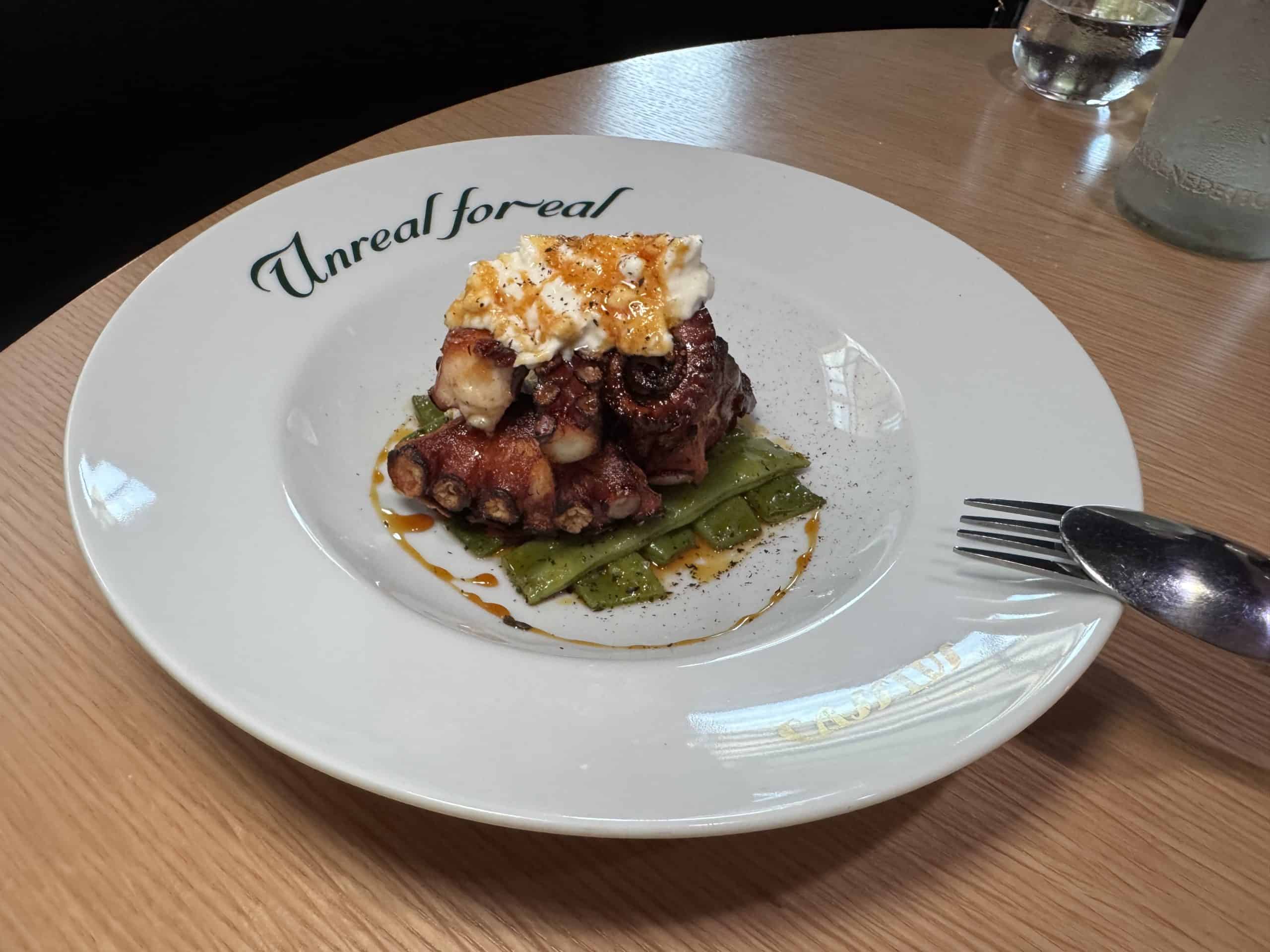 I’m told one of the restaurant’s most popular dishes is a standout pairing of roasted octopus and creamy cheese, resting on a foundation of snappy runner beans and topped with a drizzle of salted caramel infused with black tea.