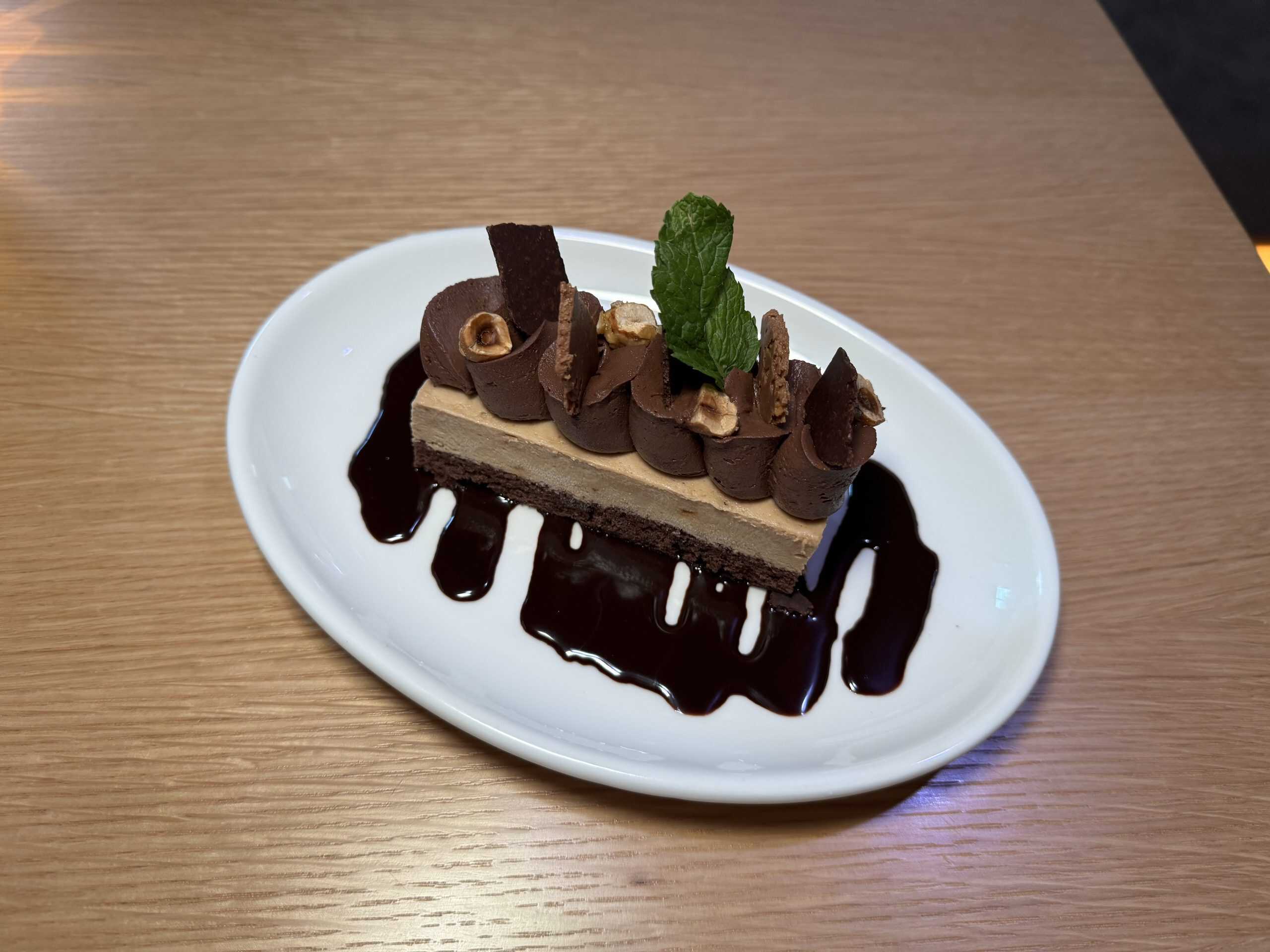For something slightly different, there’s the semifreddo “Rocher,” with hazelnut semifreddo with gianduia mousse, plus nuts and wafer pieces for texture.