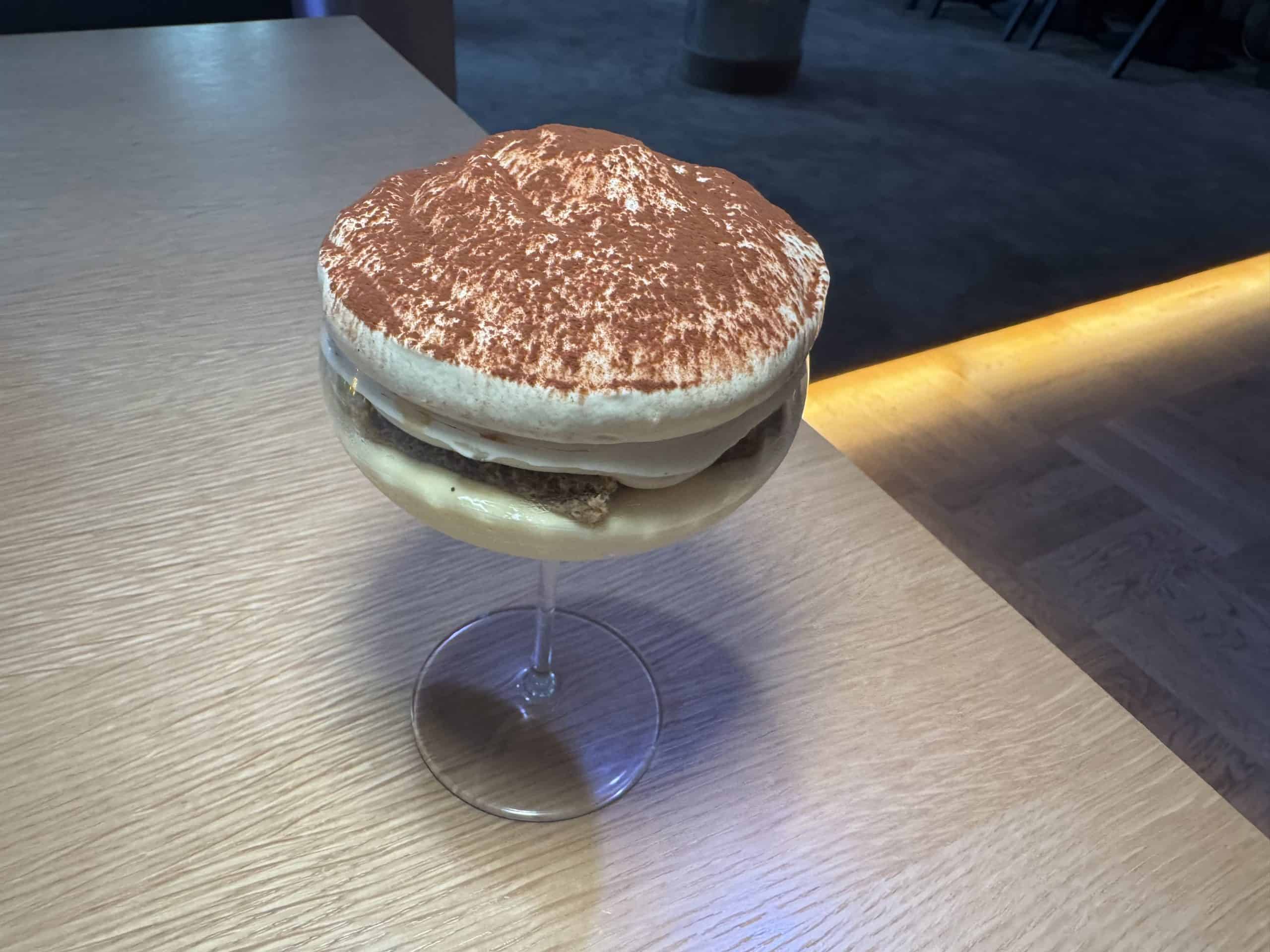 For dessert, you can always opt for go-to tiramisu, a heaping portion layered with a huge cloud of airy mascarpone mousse stuffed into a cocktail glass.