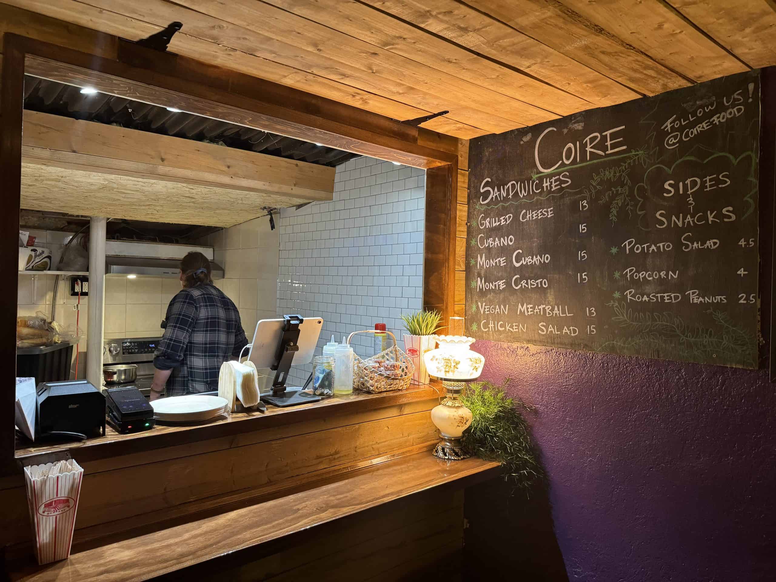 You can order by heading to the sandwich shop at the back or by ordering from within the bar, and you can expect table service unless it’s super busy. Coire also offers takeout.