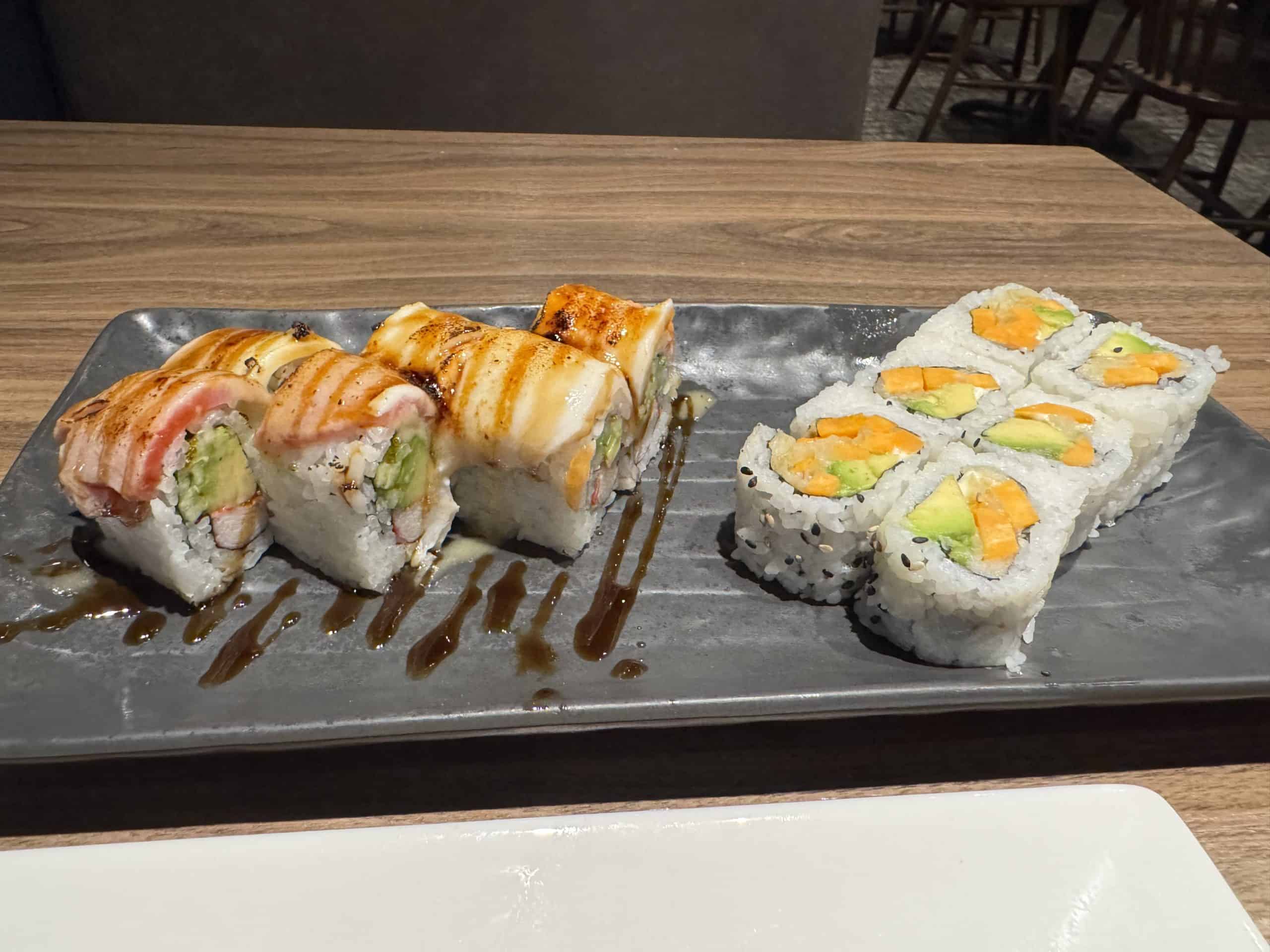 All-you-can-eat starts at just $21.99 for classic lunch. They have over 80 items on the menu, and when it comes to AYCE you can choose items like classic sushi rolls such as spicy salmon, sweet potato and avocado cucumber, and hand rolls with options including California and shrimp tempura. Everything tastes fresh and the portions are definitely filling.