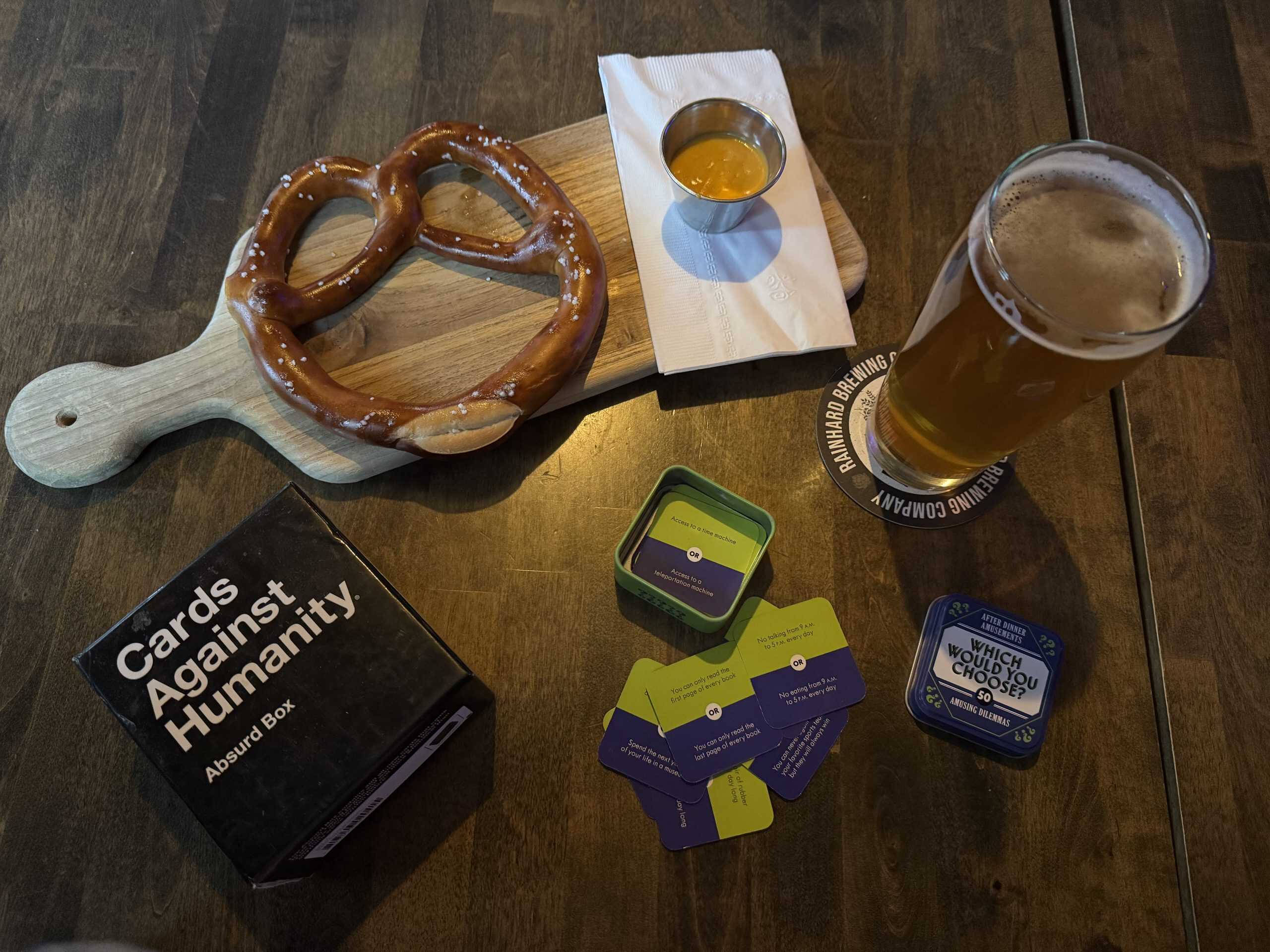 $20 game admission includes unlimited drip coffee, tea, pop or juice, but there’s a discount if you order alcoholic beverages and game admission is free for kids 12 and under. They also have lots of regular events to keep things social.
