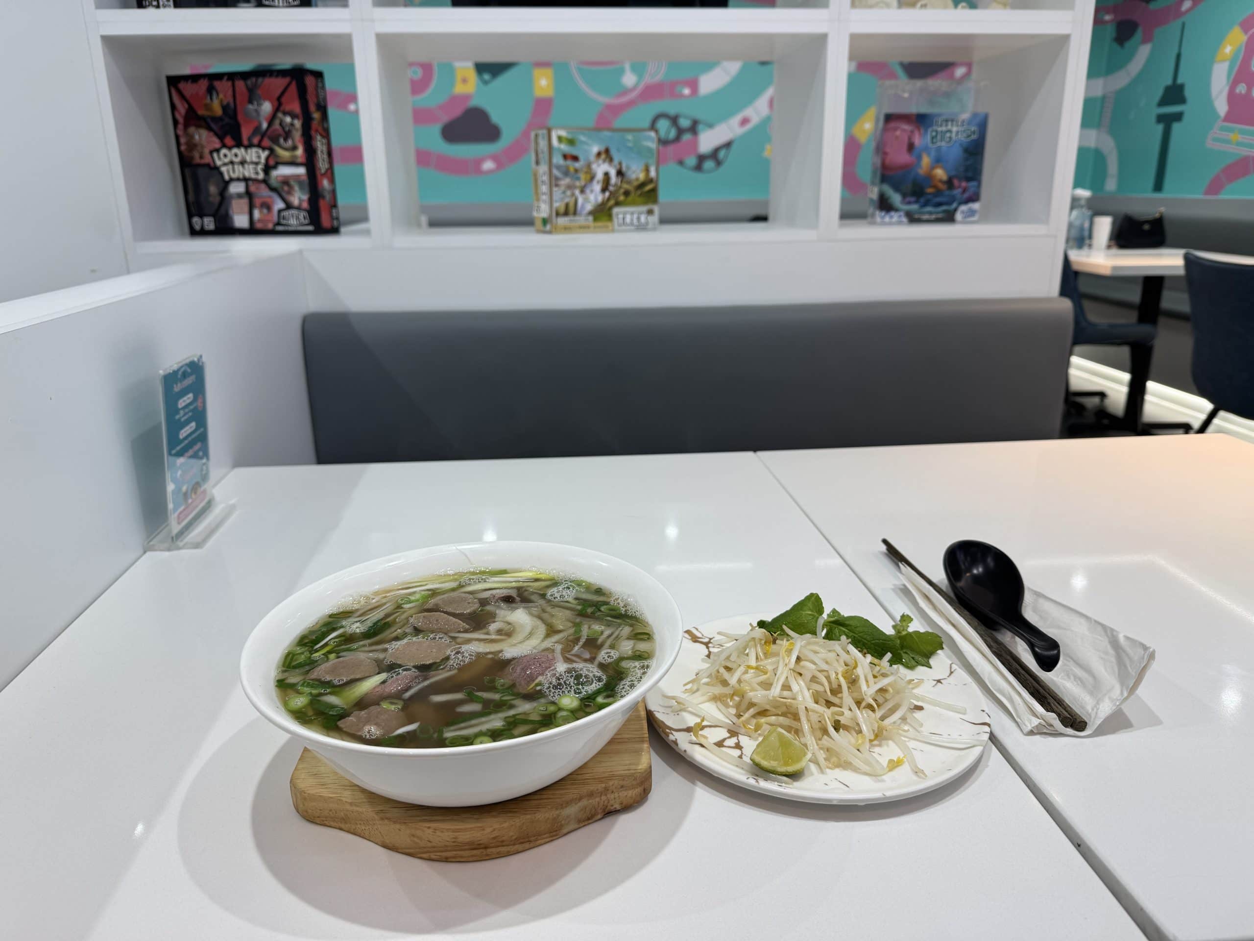 In addition to games, there’s also some cool nerdy decor displayed on the shelves. For a hearty dish to go along with your gameplay, try their signature pho loaded up with beef, which you can order using their convenient QR service. They also serve brunch on Saturday and Sunday.