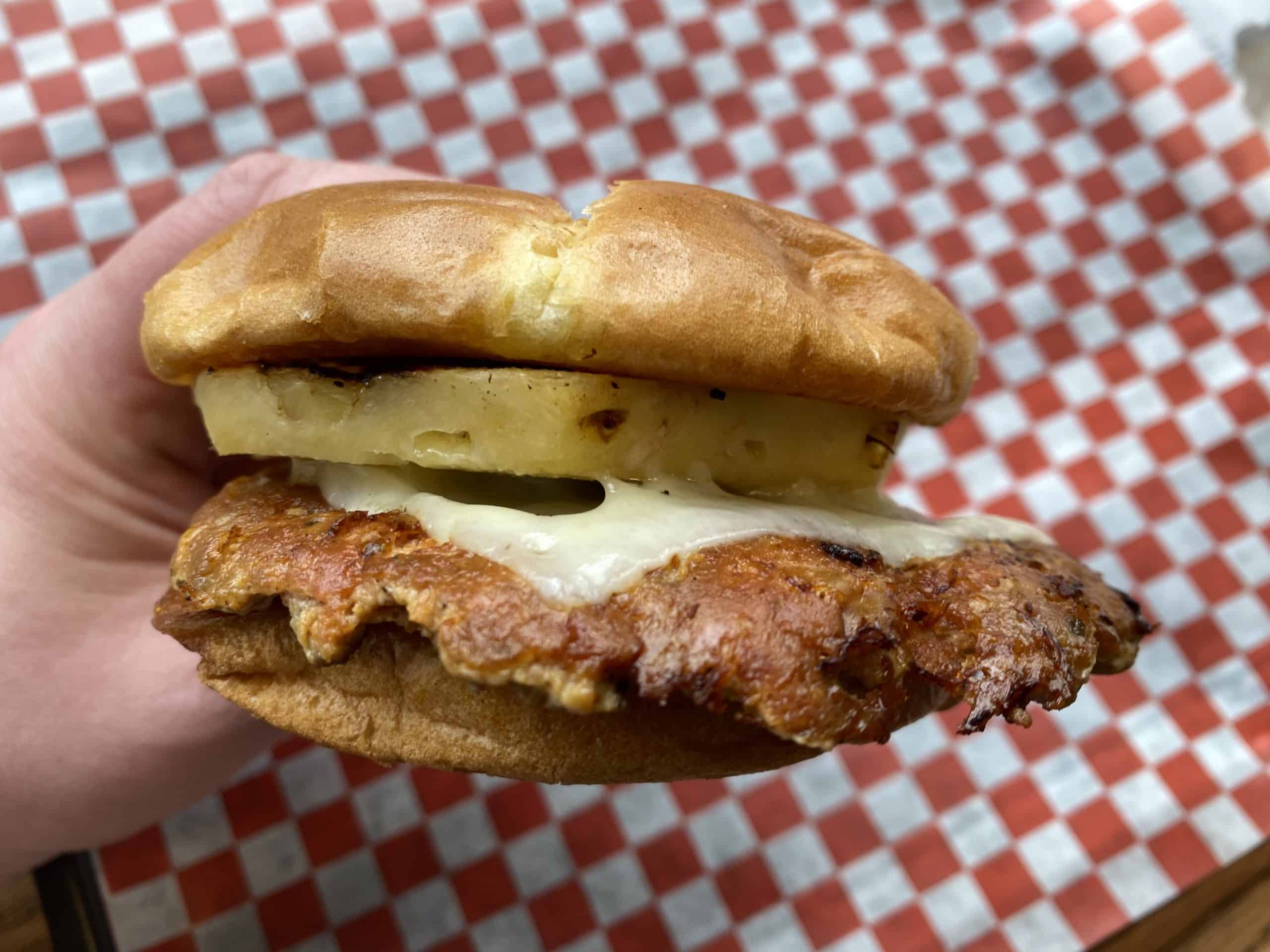 The Red Burger is great if you like a bit of kick to your food, and the heat really builds as you continue eating the whole thing. The creaminess of the havarti and the sweetness of a thick slice of pineapple balance that out. The chorizo is a nice variation when so many other burger places exclusively offer ground beef.
