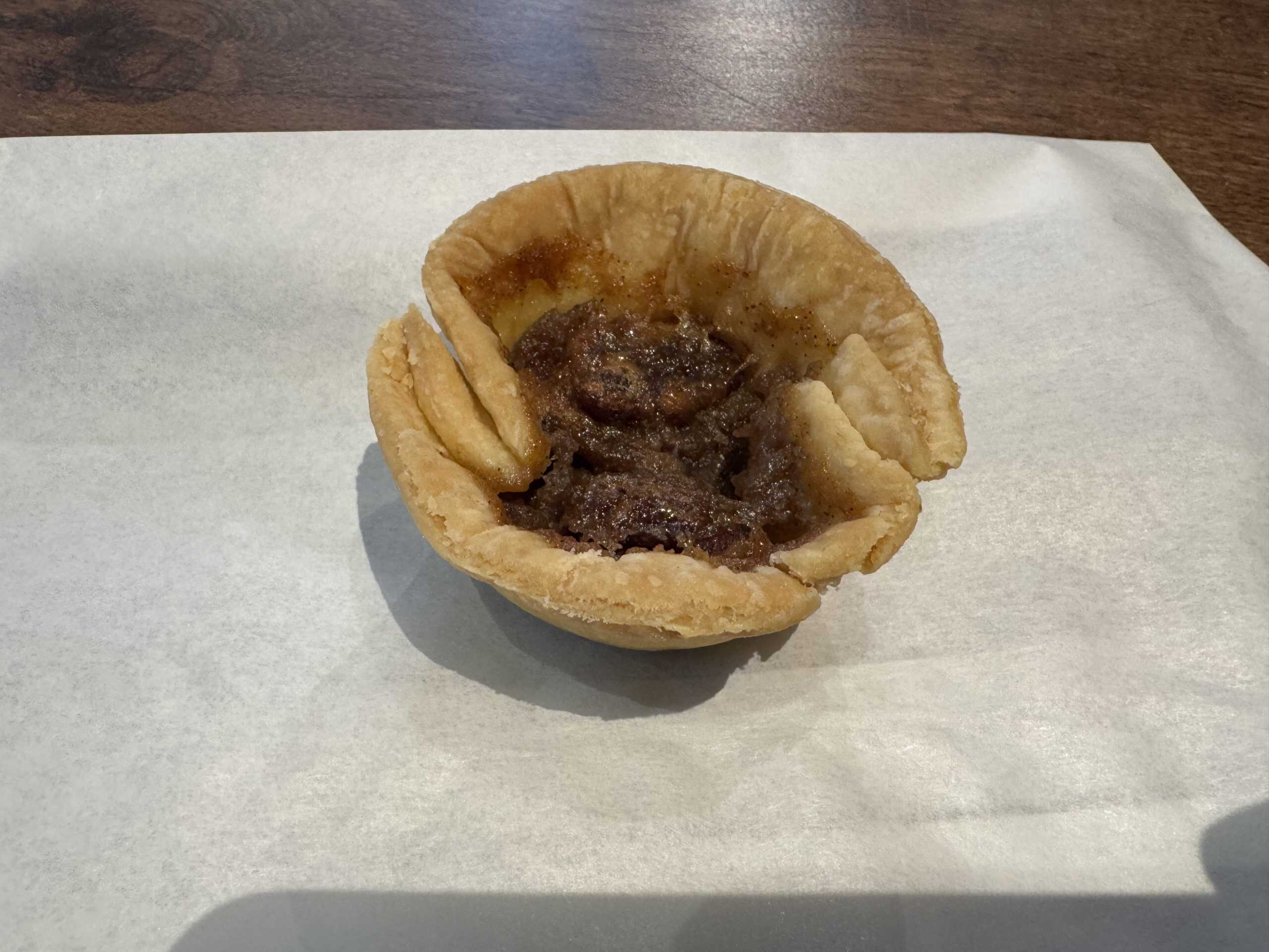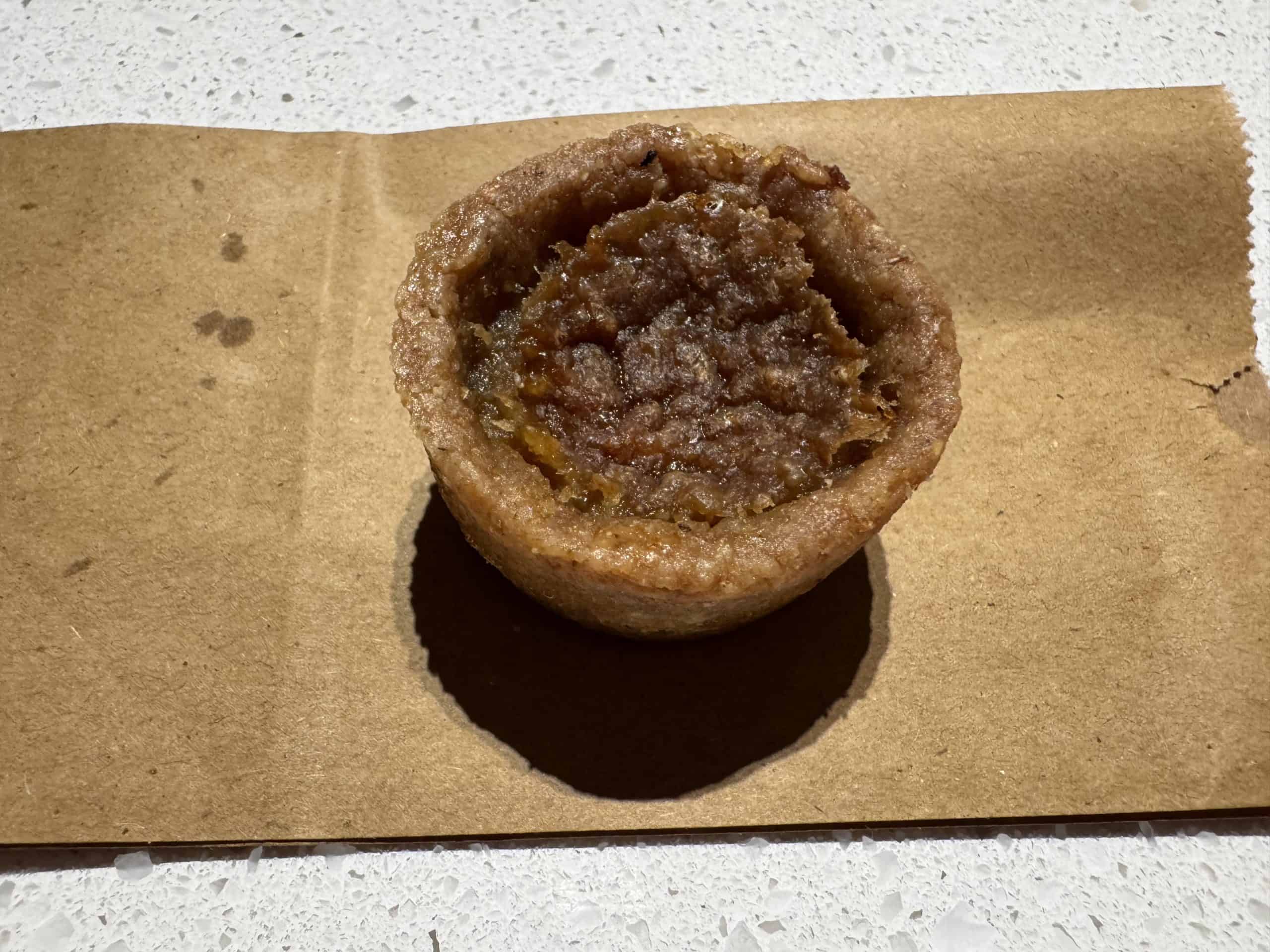 Mabel’s has several locations and two options for butter tarts: pecan and toffee. The pecan version has a nice sticky filling with lots of big, whole crunchy pecans.