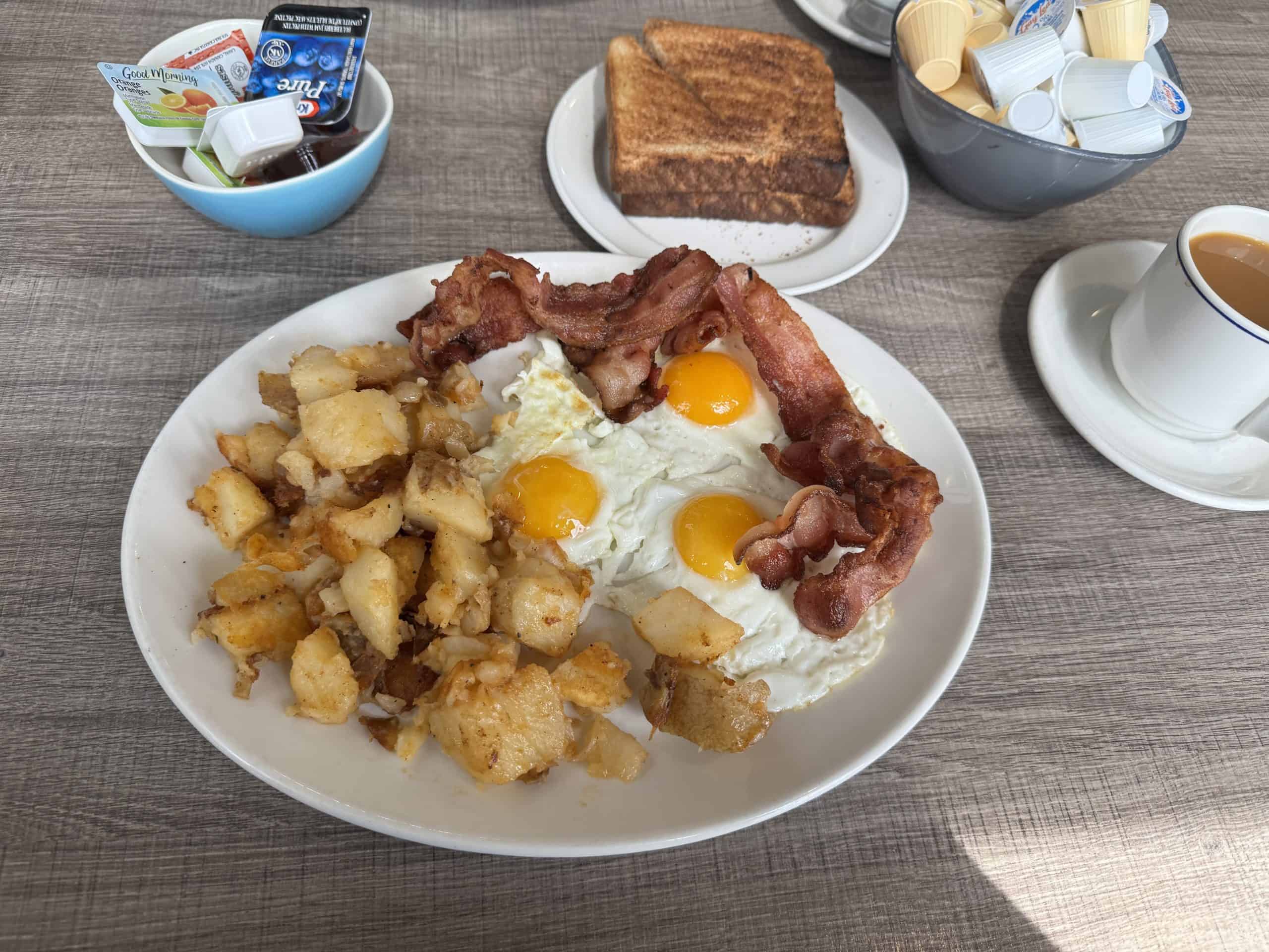 The Wally’s Traditional breakfast is particularly economical, with three eggs, home fries, thick pieces of toast and your choice of bacon, sausage, ham or turkey bacon. They also have a selection of traditional diner sandwiches for under $10.