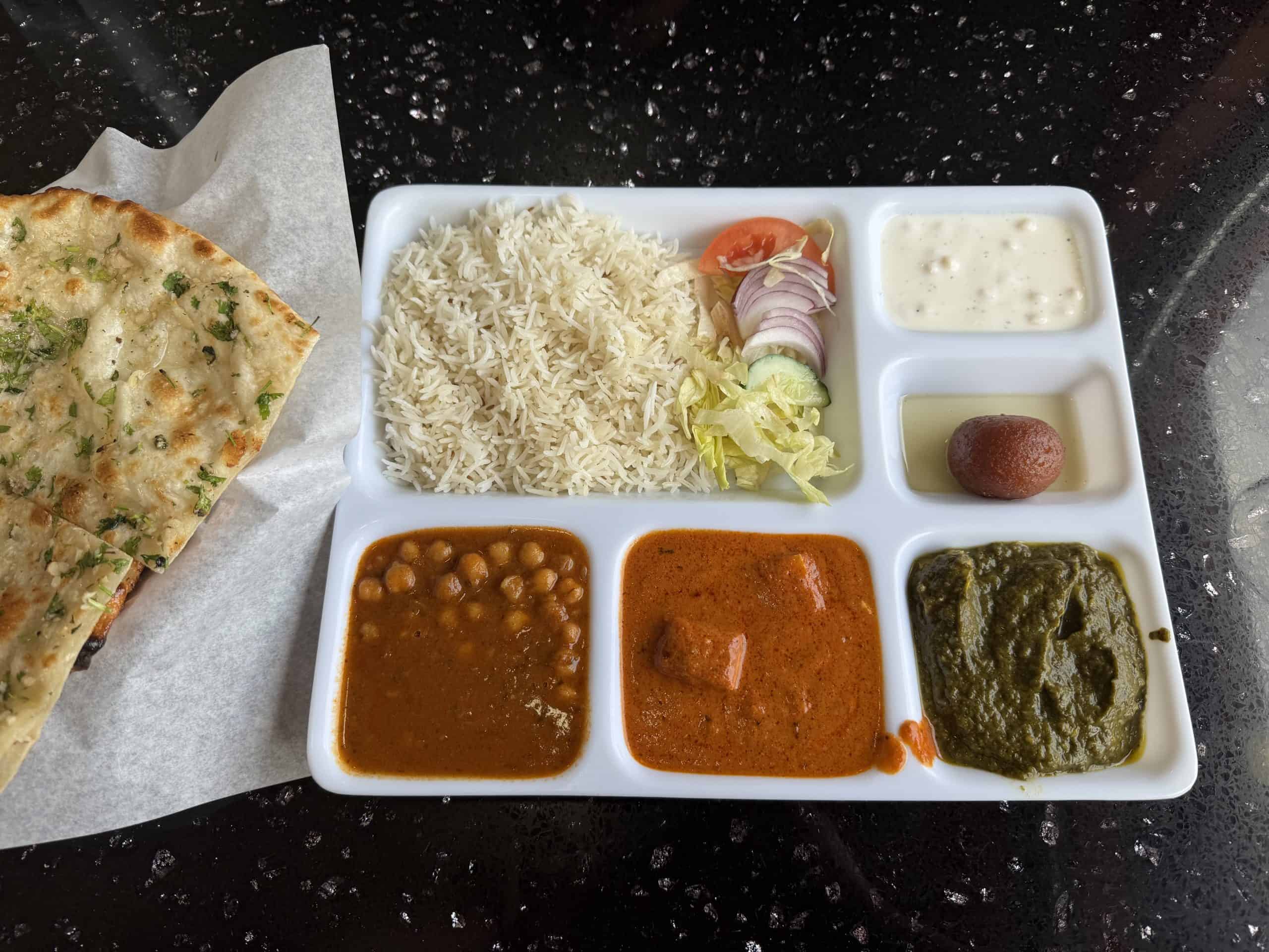 Thali meals at this unassuming restaurant are under $15 and come with three curries, rice, naan, raita, salad and dessert. Curries are silky smooth and packed with flavour, the rice is fluffy, and a garlic naan is super buttery and fragrant. For dessert, soft balls of gulab jamun come drenched in an ultra-sugary syrup. They also have specials under $15 many days of the week.