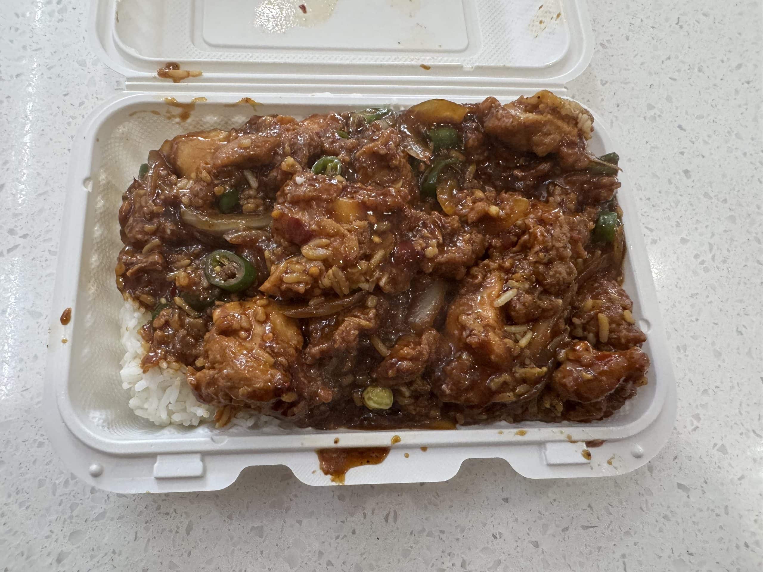 All-day specials of meat or veggie Hakka dishes on rice run around $10 at this charming restaurant tucked away in a strip mall. Classic chili chicken comes with big chunks of chicken on a substantial bed of rice, smothered in a thick, chunky gravy that’s relatively mild except for big pieces of chili pepper.