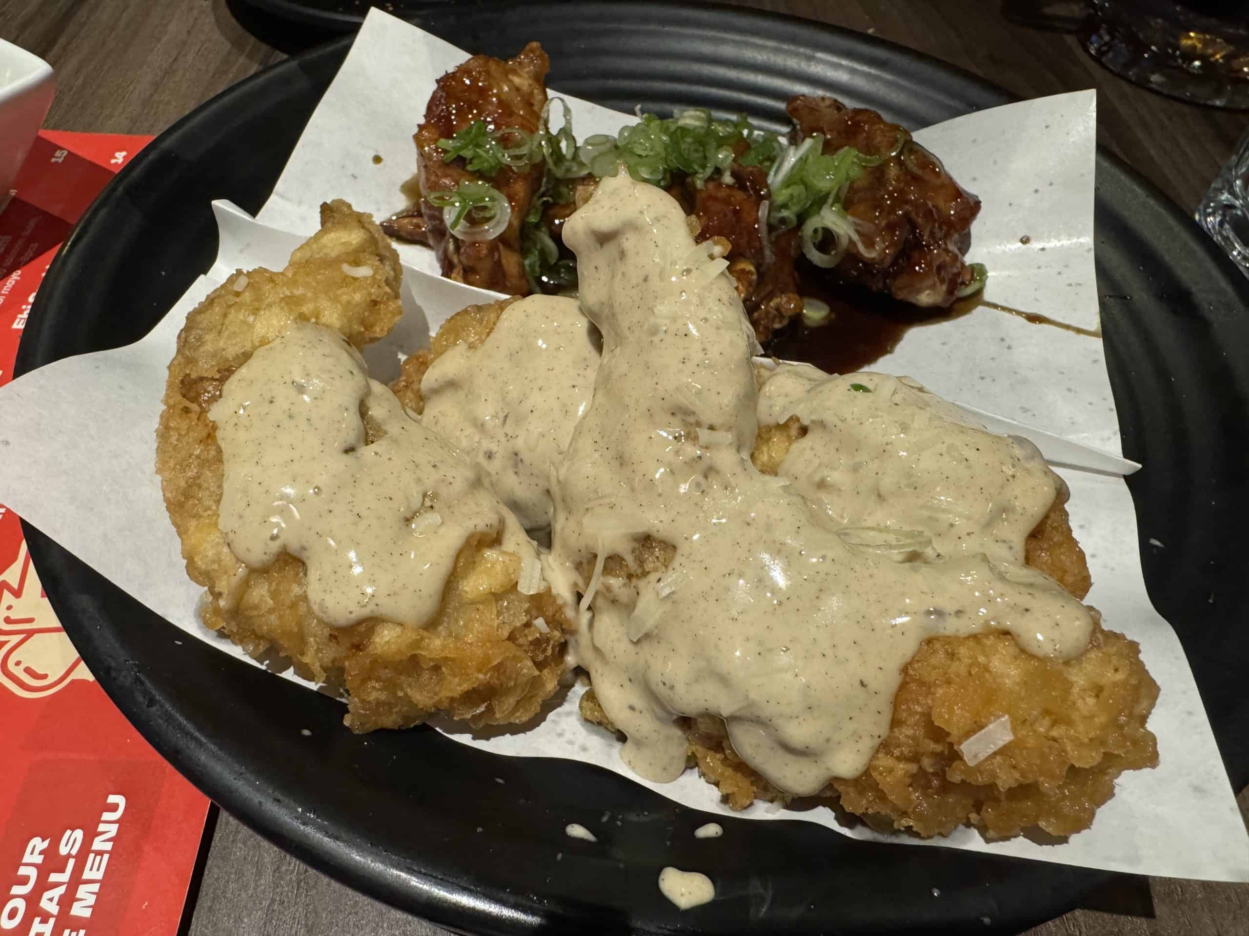 There are multiple locations of this restaurant that’s popular for their Korean fried chicken, especially their wings. They’re super meaty and crispy with a crunchy coating that has lots of texture, and come in flavours like spicy sauce.