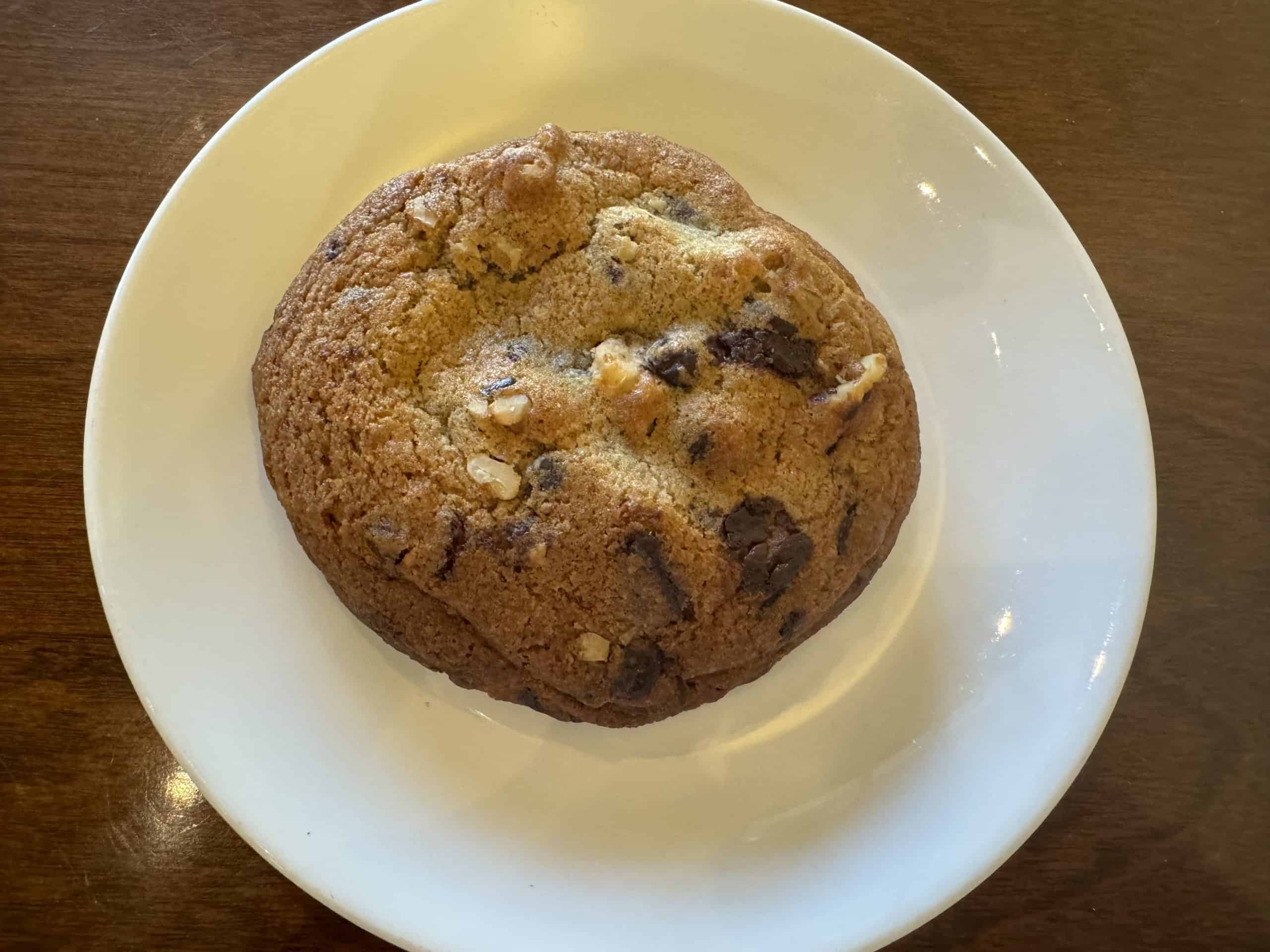 The chocolate chip cookie here is huge, bigger than your hand and absolutely loaded with tiny chocolate chips. It looks amazing, and tastes even better.