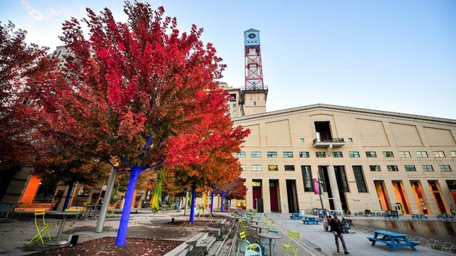 For a third year in a row, a public art competition was held and asked the arts community to create a unique design for the pyramidal oak trees which line the center of Hurontario Street and Burnhamthorpe Rd W. Artists Amy Mailloux and Tony Di Nardo were selected by a jury and their artwork entitled CANcolours150 celebrates Canada’s sesquicentennial anniversary and will remain in place until the spring. This temporary public art installation celebrates the diversity of cultures and ethnicities that unites us all as a nation.