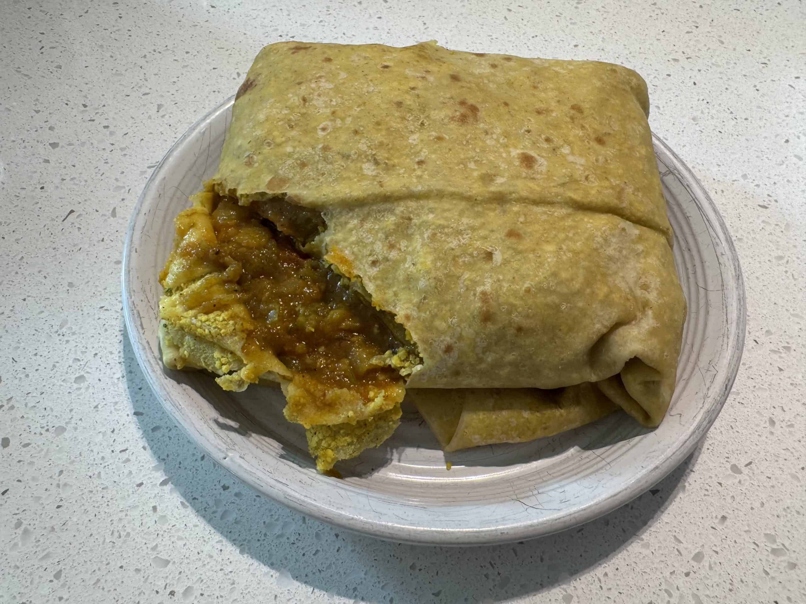The roti here have a firmer shell and are more compact, and there’s a wide variety of options for fillings, both meat and vegan. Choose meats like jerk chicken or oxtail, or vegan fillings like eggplant, spinach, potato or chana (chickpea). The eggplant is juicy but firm with a nice snap to it, and the stewy vegetable goes well with the full-bodied curry.