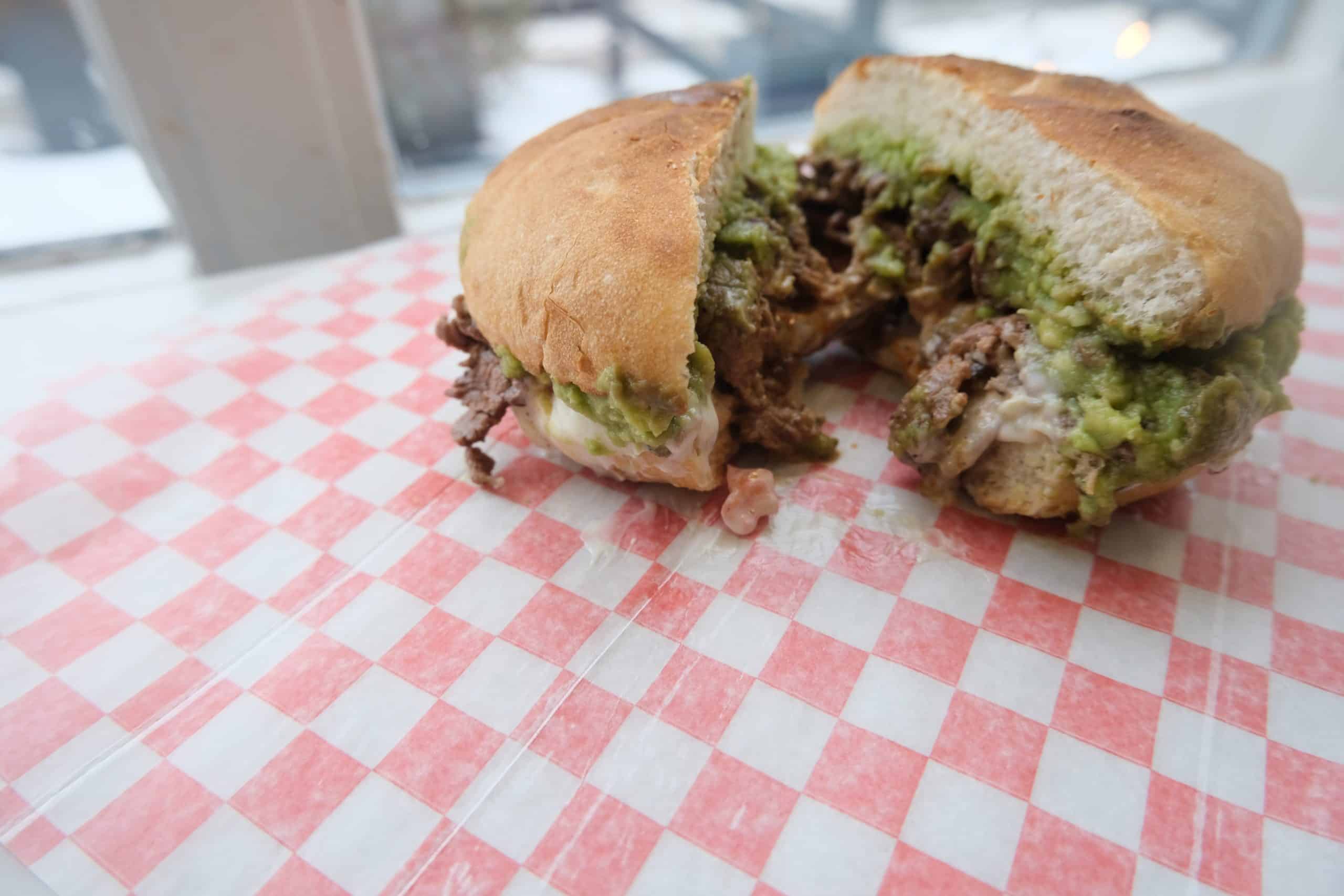 This handheld is the perfect fix for those yearning for something with a little kick, as it features a toasted bun loaded with thinly sliced steak, avocado, tomato, mayo and red pepper sauce.