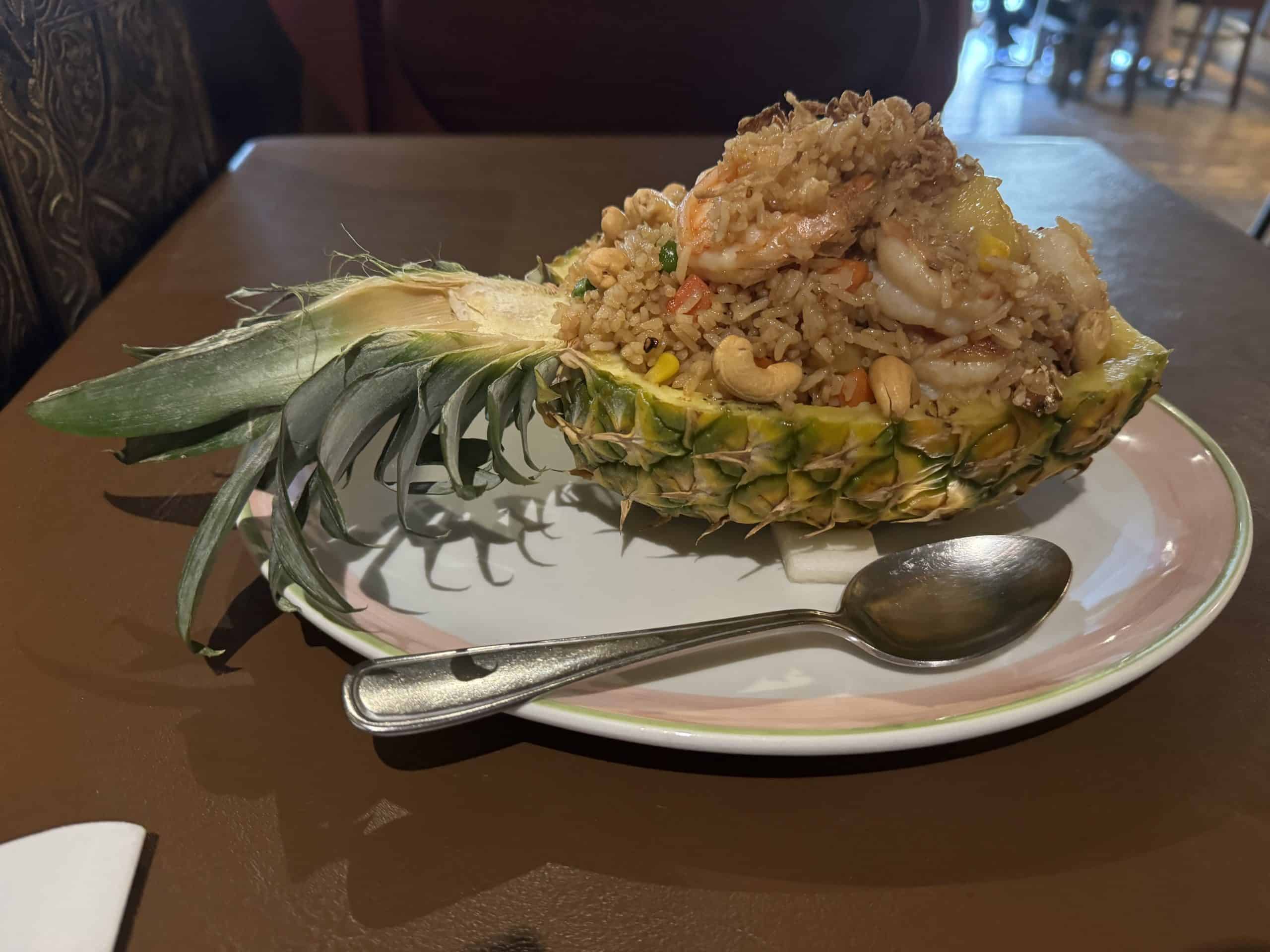 For a dish that’s visually impressive while still relatively typical, opt for the royal Thai pineapple fried rice served in a pineapple. It’s sweet, nutty and comforting, and the rice is perfectly cooked and studded through with lots of veggies, pineapple and protein.