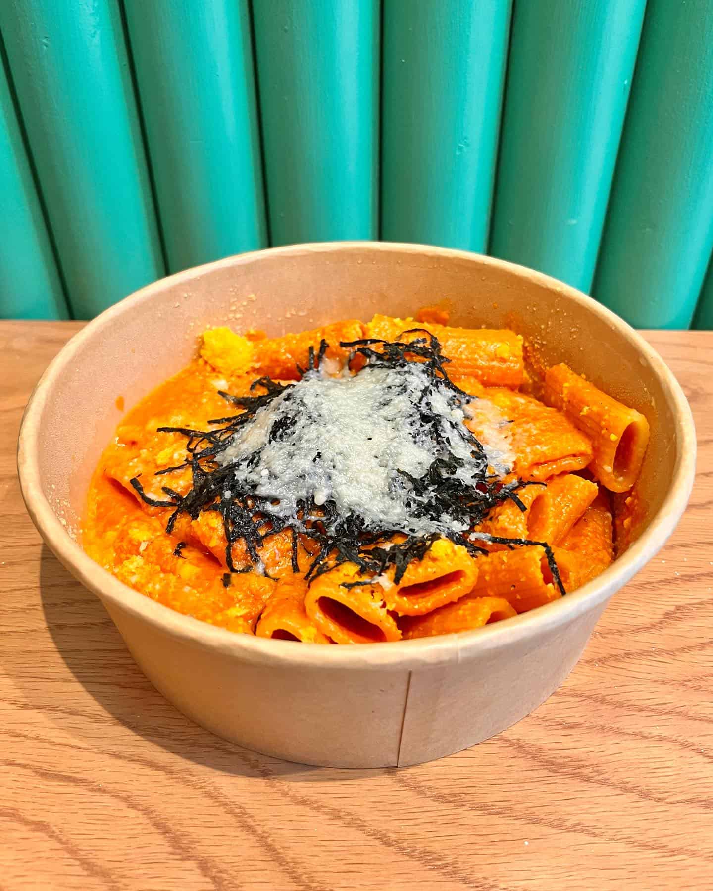Moon Pasta is now serving up rigatoni and fettucine with Asian influences alongside Vietnamese coffee and house made soda. Options on the menu include a green curry rigatoni with smoked duck, a sake rose rigatoni with salted egg yolk and nori, a butter gochujang fettuccine and a bo kho bolognese rigatoni, all priced at $15 or $16.