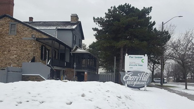 We recently passed Penny’s Favorites–a brand new restaurant that called Mississauga’s famed Cherry Hill House home–and noticed this ominous signage. According to the sign, the property is officially available for lease.